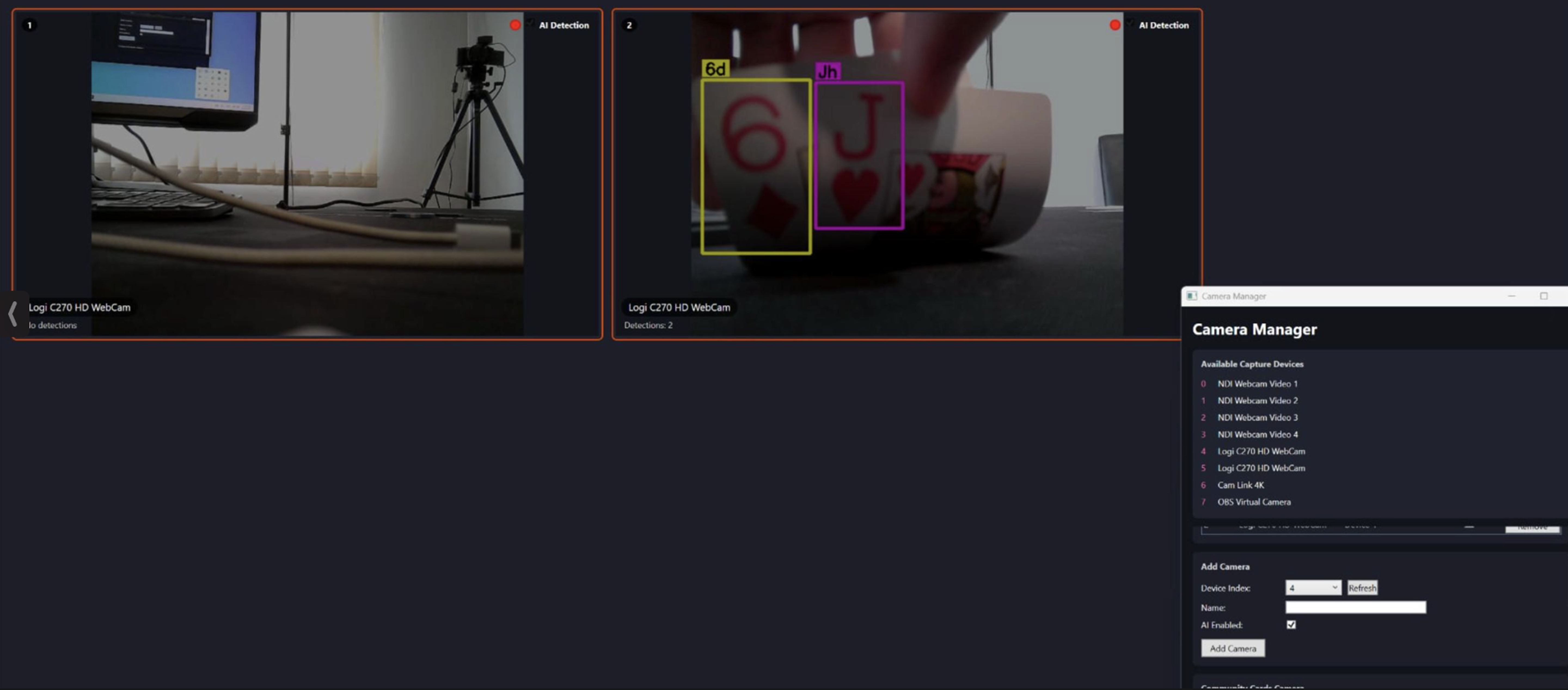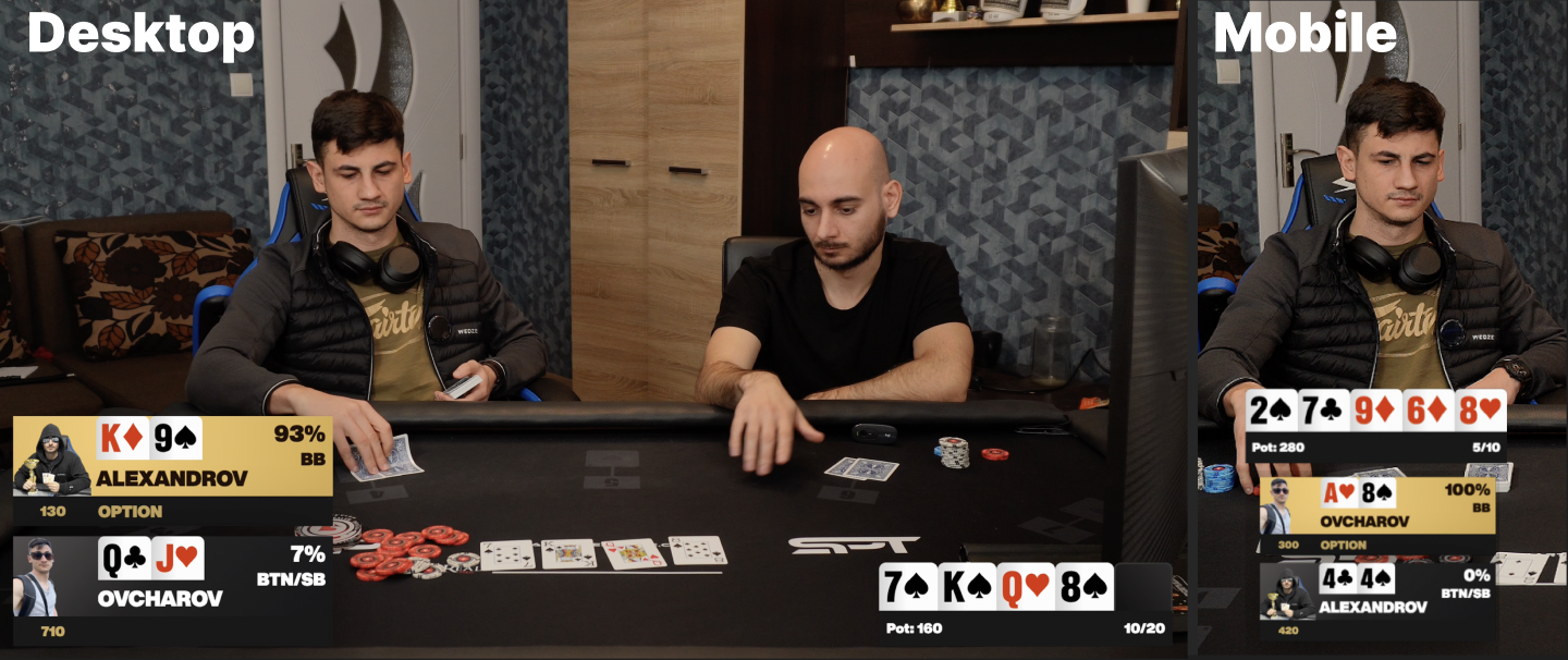 We use our computer vision models to detect the cards from the video sources, giving us player's and community cards